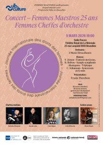 L’association Femmes Maestros, en collaboration avec l’Université libre de Bruxelles et le Théâtre Royal de La Monnaie présente «Concert Femmes Maestros 25 ans ». Une ode à la musique et à l’histoire de notre association, le tout, dans le cadre de la Journée Internationale des droits des femmes.